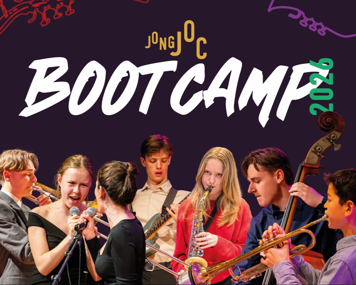 Het is alweer tijd voor de vijfde(!) editie van de JONG JOC Bootcamp. Het weekend waar jonge jazzcats uit heel Nederland van 's morgens vroeg tot 's avonds laat samen heel veel muziek maken! Aan het einde van de Bootcamp vormt deze groep de nieuwe lichting van onze junior bigband JONG JOC, die ook op meer plekken in het land optreedt. (In 2025 bijvoorbeeld in het Concertgebouw in Amsterdam en in 2024 in Lantarenvenster in Rotterdam!)