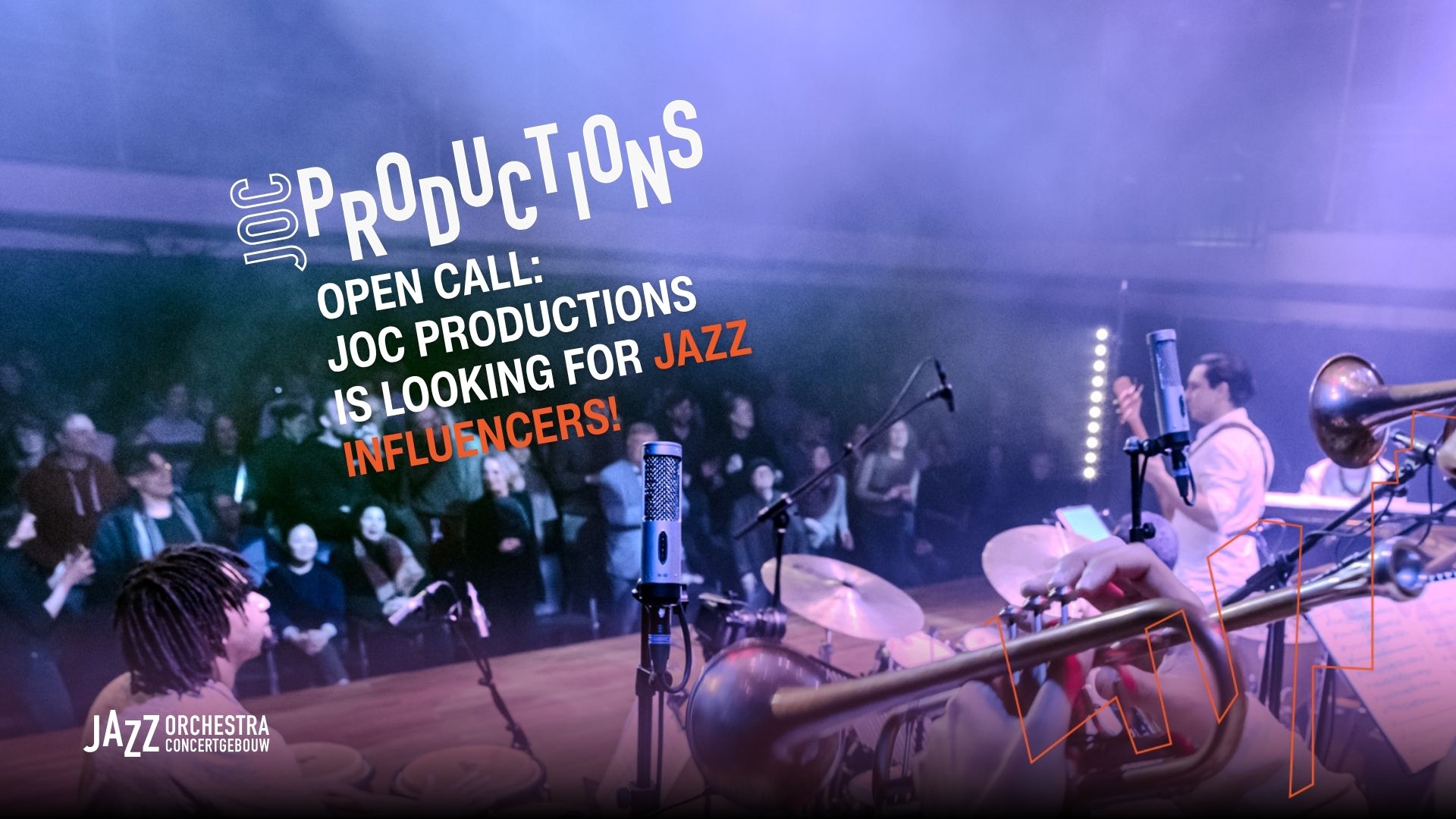 JOC Productions is looking for musicians residing in the Netherlands(<35 years old) to create a full concert for large ensemble and bring it to the public from January 2027 onwards. We will be by your side with expertise, but you will be in charge of compiling your own ensemble, production and marketing to bring your concept to the stage.